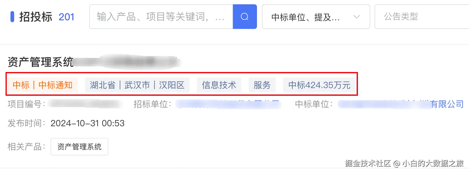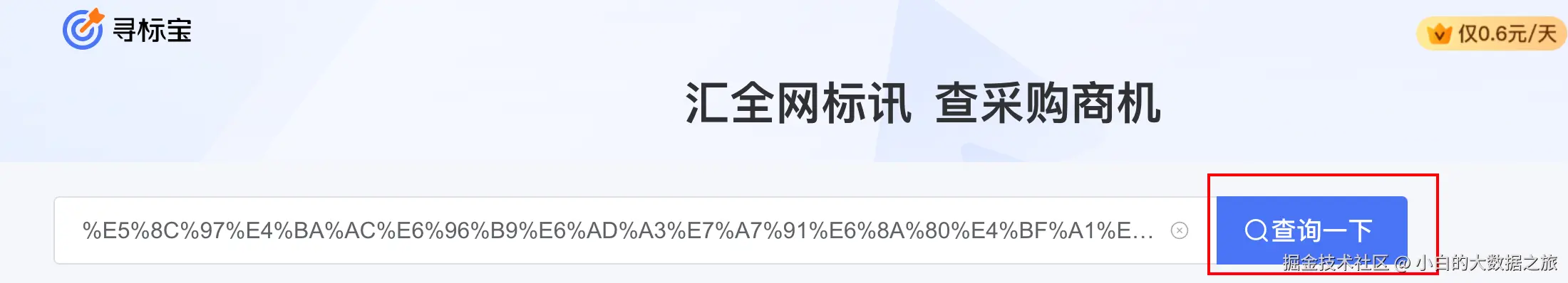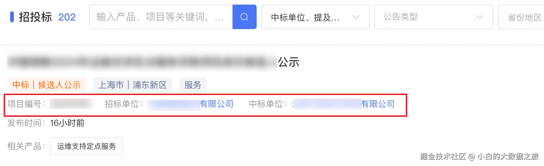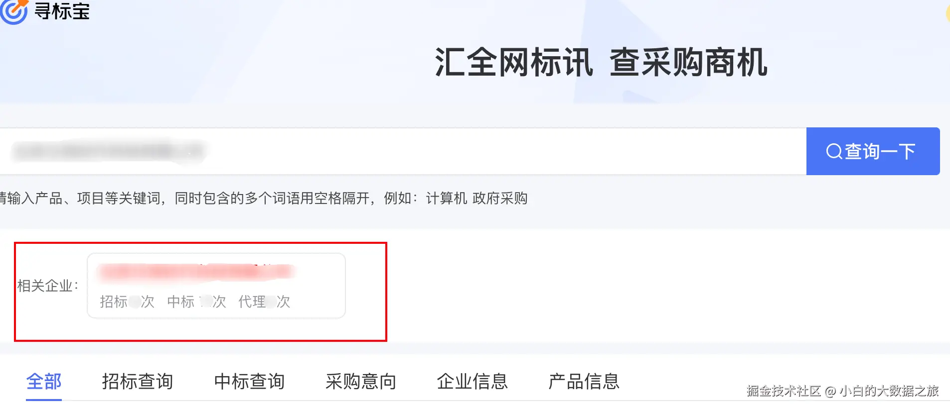各位大佬们好!我是小白,前两天接了一个单子,根据客户给出的公司名单去招标网获取公司的所有招标数据,因为客户给的实在太多了,小白也就勉为其难的答应了,做完之后连夜将自己的过程记录的下来跟大家分享一下,希望对一下刚接触的朋友提供一些帮助,也希望大佬们的指正,也欢迎加入我的公zhong号:小白的大数据之旅,一起交流学习。 本文爆肝3W字,里面每一个步骤都比较详细和清楚,可以认真慢慢观看,因为是临时写的,其实还是有一些不足的地方和需要优化的地方,大家如果有什么建议也可以在评论区讨论哦。祝大家事业有成,学业顺利!