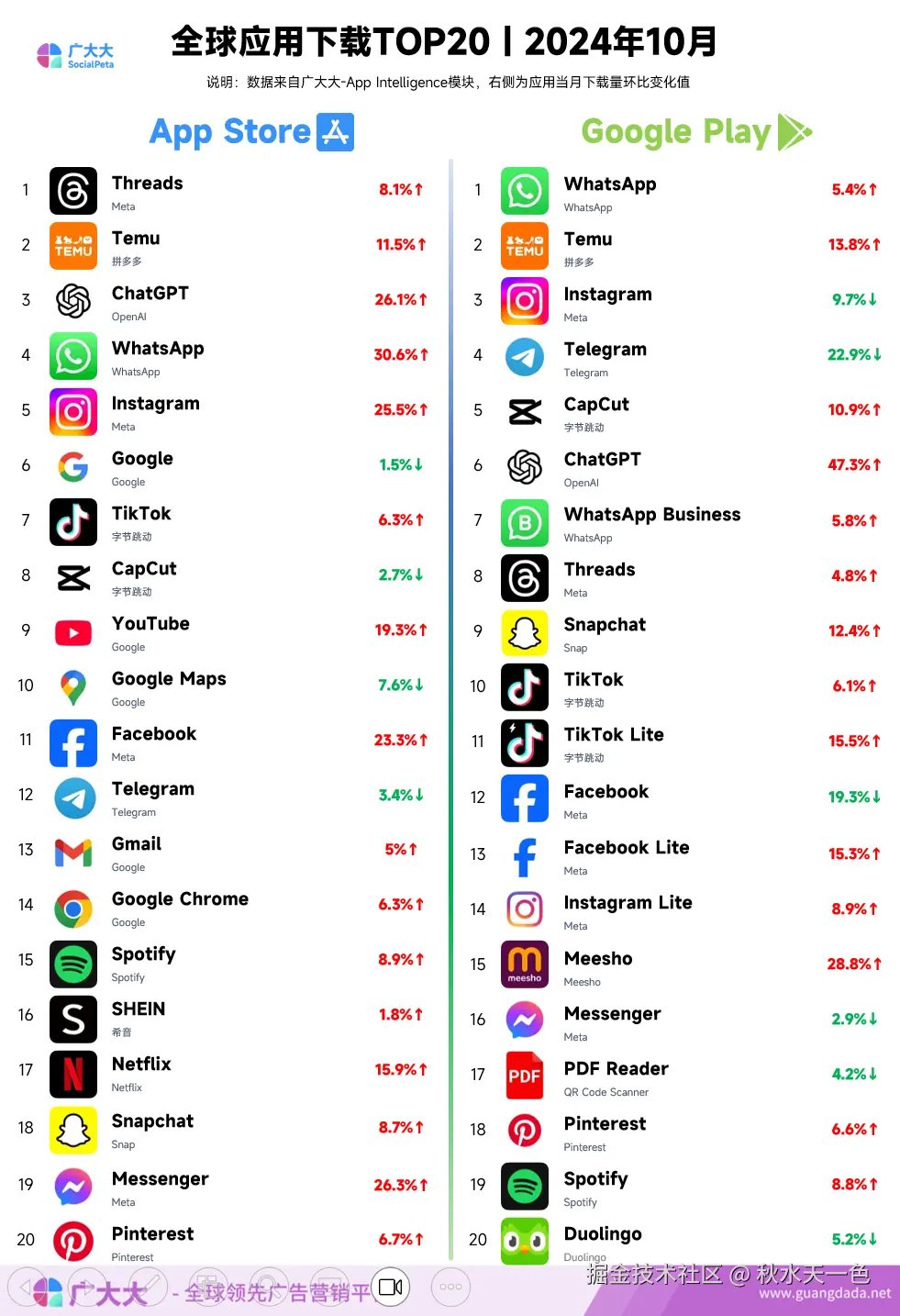 除此之外,多款社媒平台也在10月完成了暴涨,以【WhatsApp】为代表,涨幅达到了30.6%。