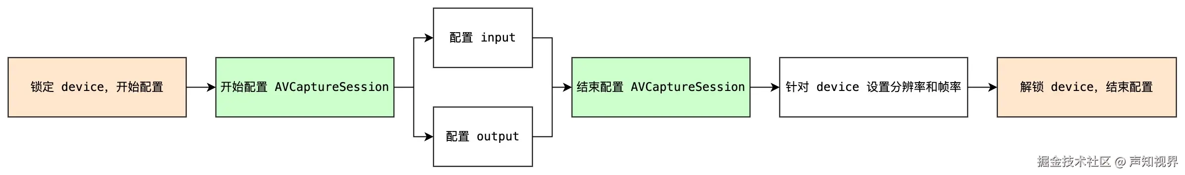 配置参数的流程需要额外注意,AVCaptureDevice 和 AVCaptureSession 不是随时随地都能进行配置的