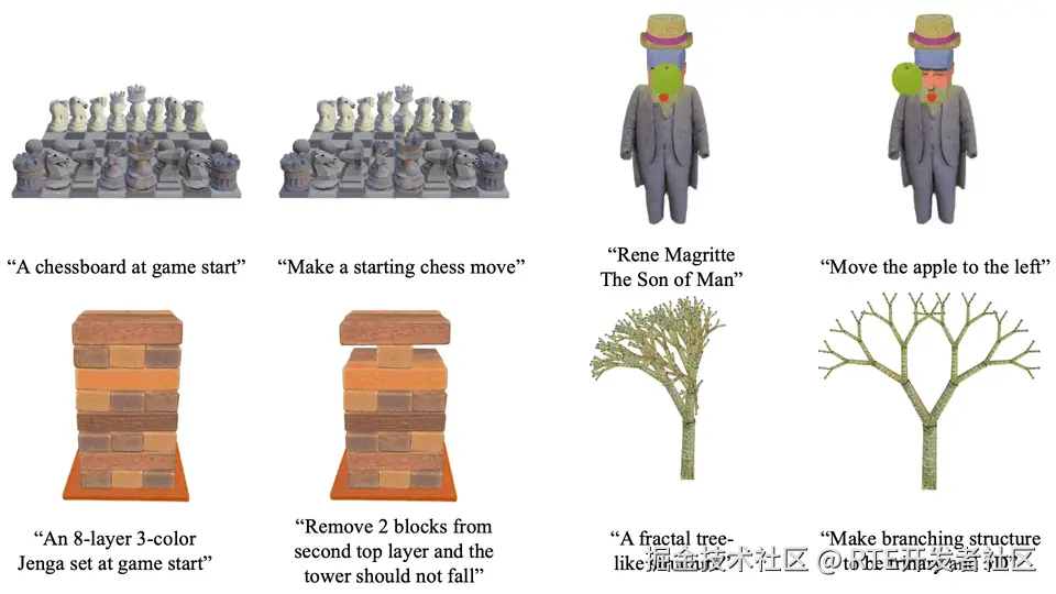 这个新语言不仅能让 AI 理解我们的需求,更让它能够细致地将人类的描述转化为三维世界的场景。同时,它还具备编辑功能,一句简单指令就能改变场景中的元素!物的位置、风格,现在都可以随意调整。