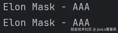 //调用该方法,结果仅会返回 Elon Mask - AAA