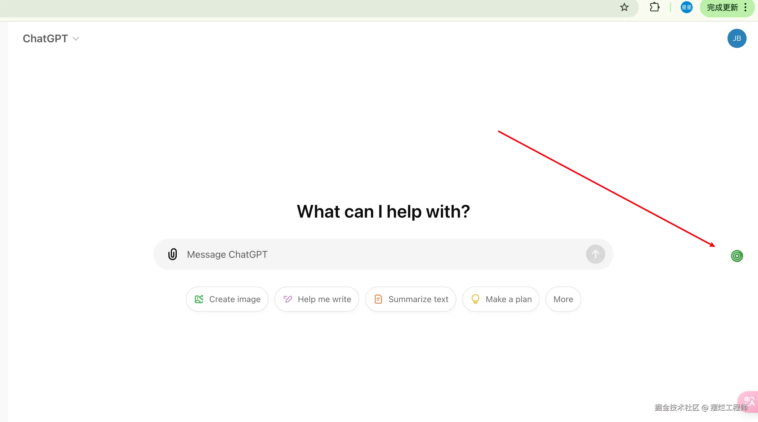 到Chrome应用商店,点击添加至Chrome即可。下次打开ChatGPT官网或者刷新页面,就可以看到下方的小绿圈。