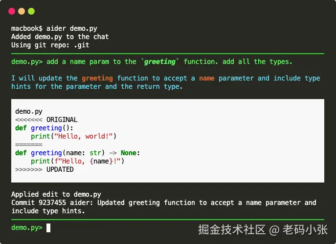 来,咱们简单上手试试!首先,安装 Aider,下面是快速上手的代码: