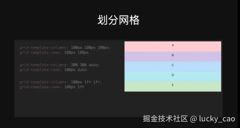 - dispaly:grid(使元素生成一个块级的grid容器)