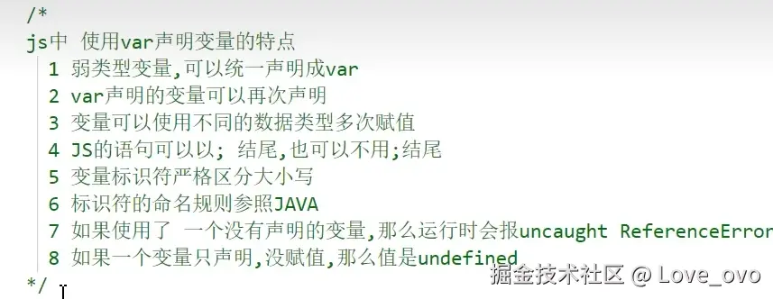 在js中 统一用 var (var a = 1;) 来赋值,通过值来觉得类型