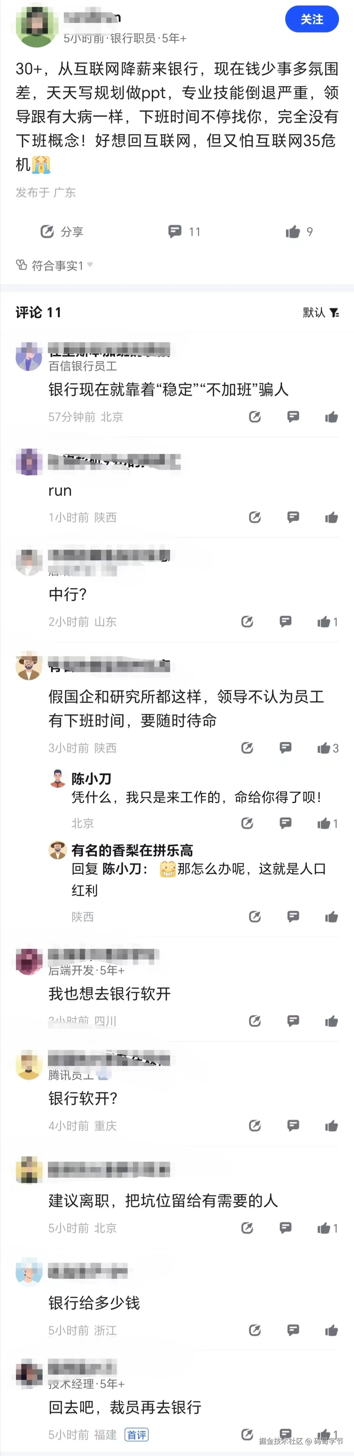 从互联网行业跳槽到银行,本来是一次为了“生活质量”而做出的选择,然而,现实让程序员们意识到,自己跳入的并非“安逸”的温水池,而是一个充满了政治斗争的江湖。