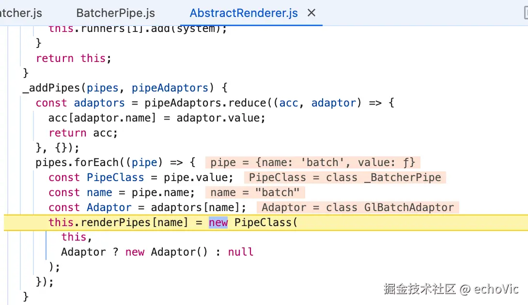- AbstractRenderer 初始化时调用 _addPipes 方法,将 BatcherPipe 添加到渲染管道中。