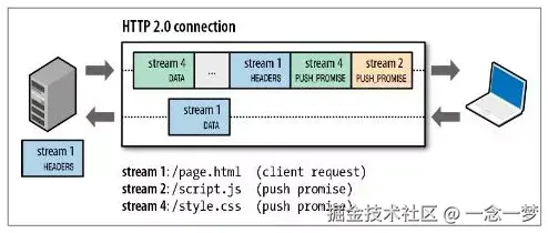 当服务端需要主动推送某个资源时,便会发送一个 Frame Type 为 PUSH_PROMISE 的 Frame,里面带了 PUSH 需要新建的 Stream ID。意思是告诉客户端:接下来我要用这个 ID 向你发送东西,客户端准备好接着。客户端解析 Frame 时,发现它是一个 PUSH_PROMISE 类型,便会准备接收服务端要推送的流。