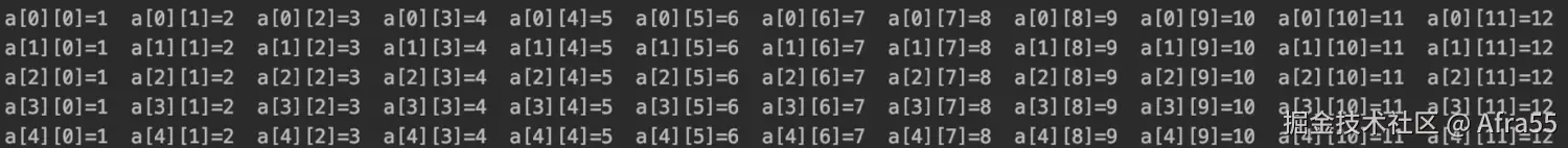 // 含6个数组元素的数组,每个数组元素内含12个int类型的元素