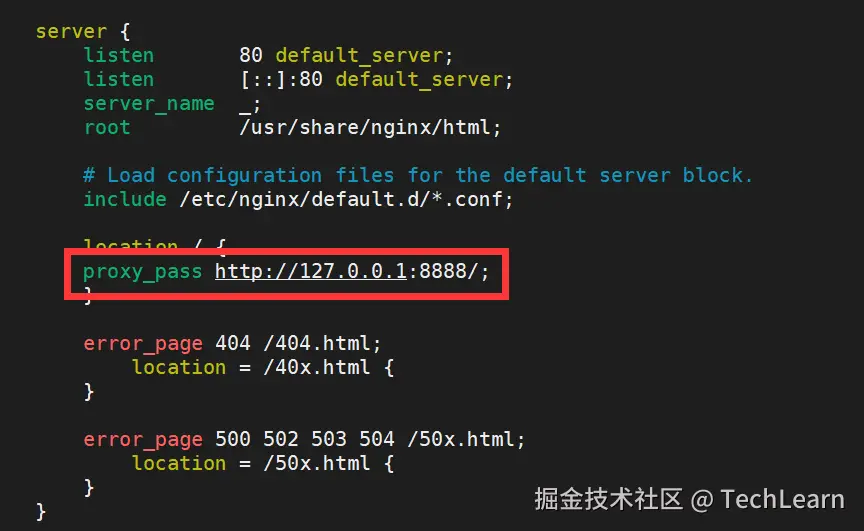 proxy_pass http://backend; # 将请求转发到后端服务器