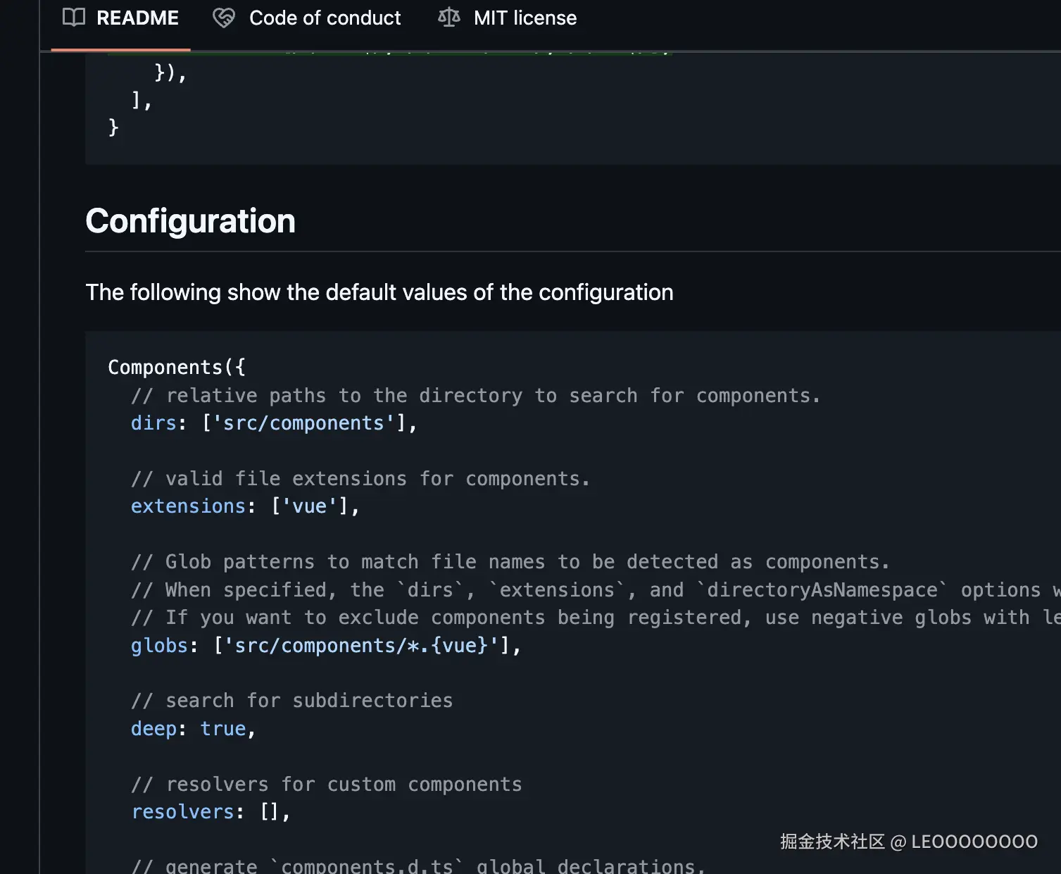 上图中的dirs参数,自动注册组件也可以是搜索目录的相对路径,那问题就解决啦,把自定义组件的相对路径填上去,就实现和element组件库一样的自动注册啦,到时候编译会自动检索这个相对目录下的自定义组件,并完成全局注册。