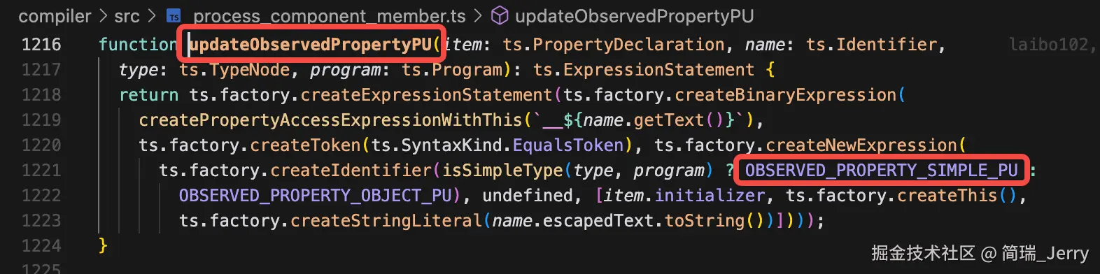 在生成变量初始化的代码时(createVariableInitStatement),如果遇到了@State或者@Provide装饰器,会使用ObservedPropertySimplePU类。