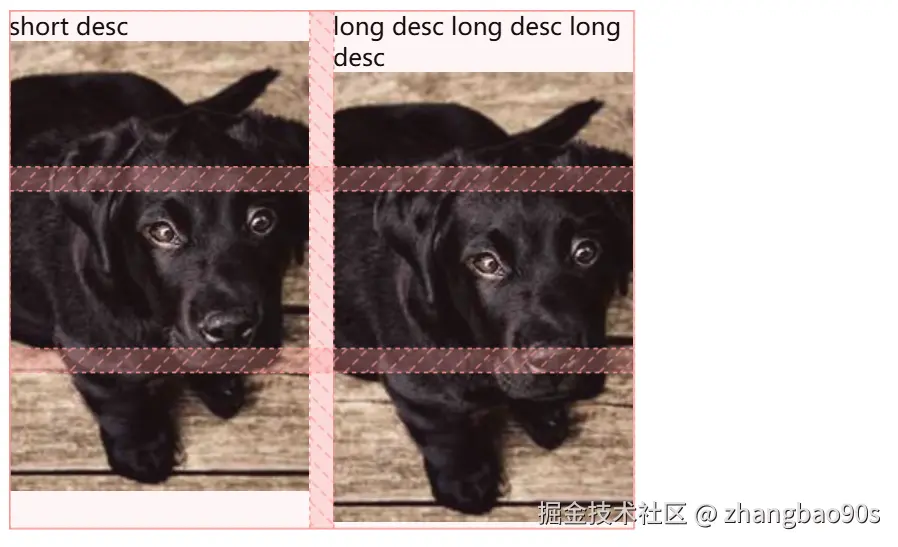 可以看到,左右两边的描述文本由于长度不一样,导致最终渲染出来的元素视觉上不一样高。