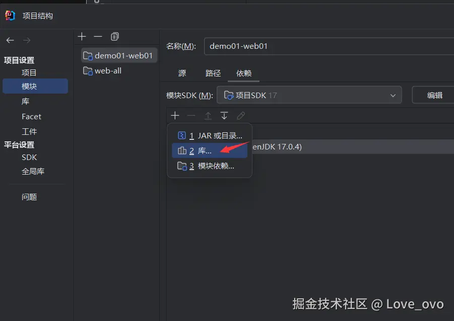 并对lib文件夹添加为库,选择添加为模块库(如果添加为项目库会范围过大)