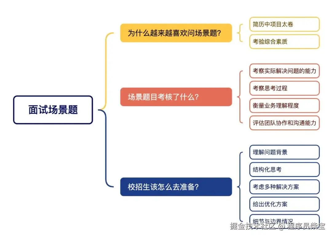 近些年,场景题面试兴起,这类题目在校招面试中属于重灾区,本文在这里分析下:为什么面试官喜欢问场景题?场景题考核了什么?校招生该怎么去准备?