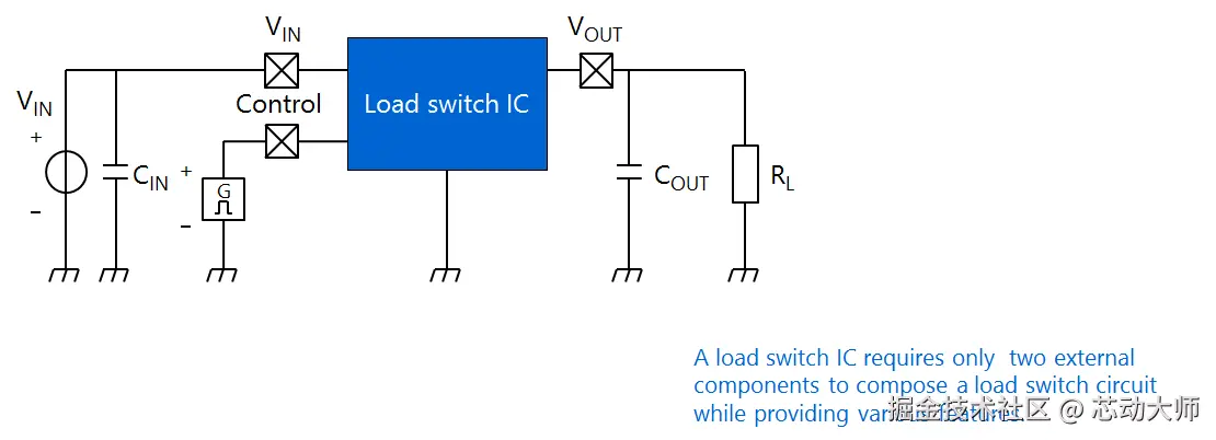 负载开关IC是以串联方式插入电源与负载电路或IC之间的一个半导体开关。