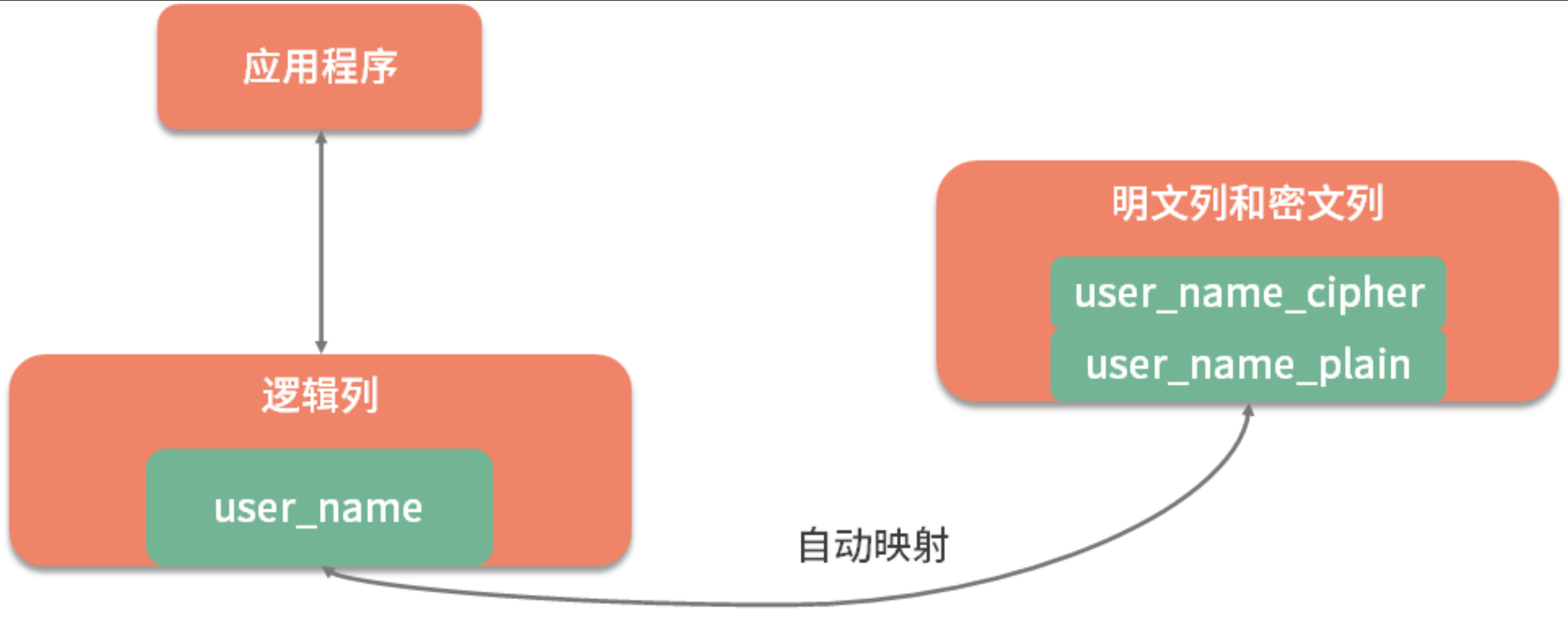 针对这个交互过程,我们希望存在一种机制,能够自动将 user_name 逻辑列映射到 user_name_plain 和 user_name_cipher 列。同时,我们希望提供一种配置机制,能够让开发人员根据需要灵活指定脱敏过程中所采用的各种加解密算法。