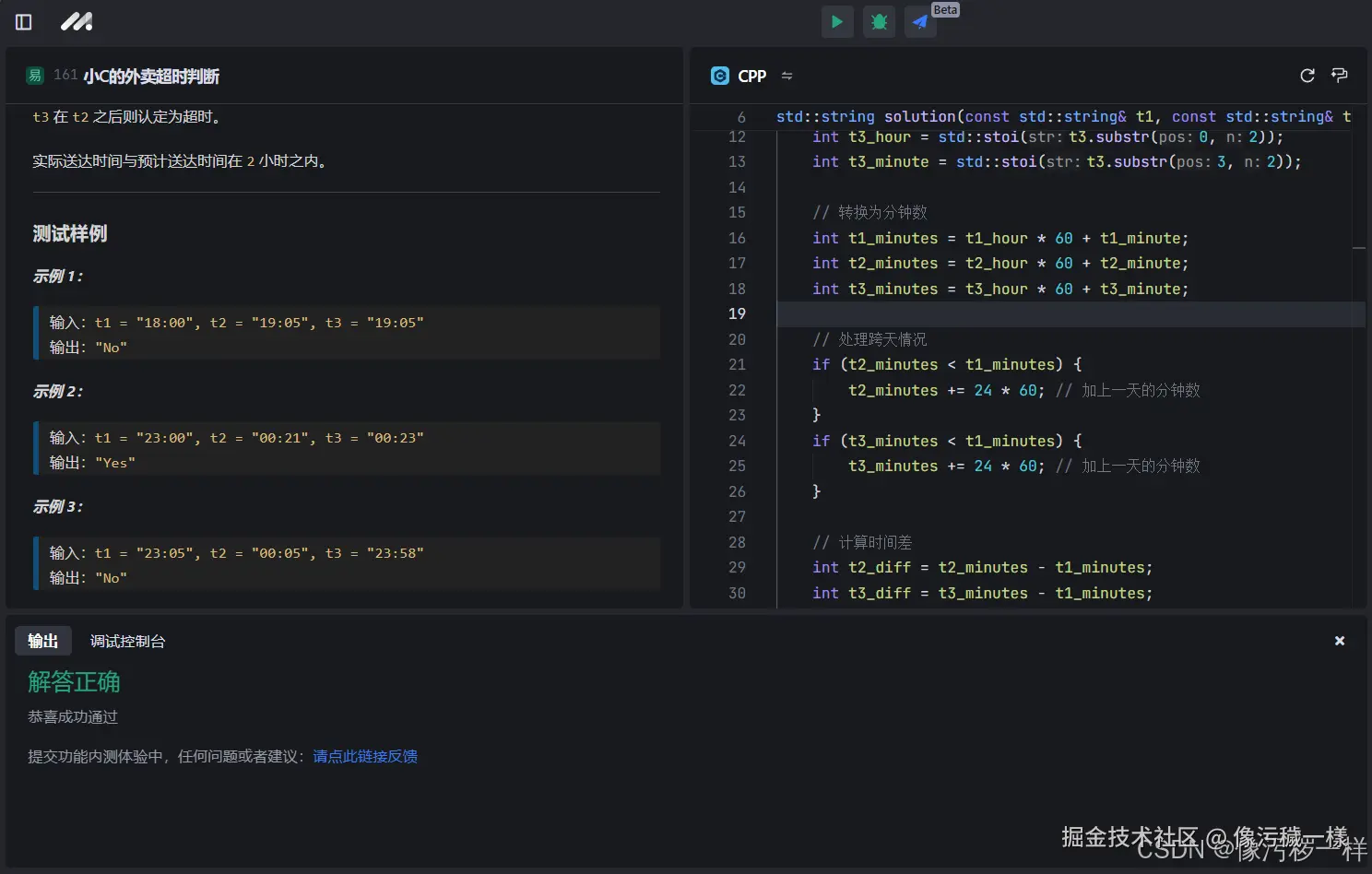 一、小C的外卖超时判断