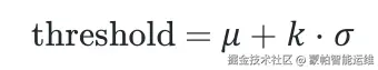 异常检测的动态阈值,基于异常分数的均值和标准差。公式可以表示为: