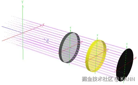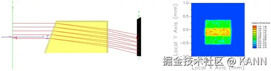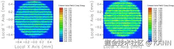 ** **简介 FRED具备通过光学系统模拟光线偏振的能力。光源可以是随机偏振、圆偏振或线偏振。过滤或控制偏振的光学元件,如双折射波片和偏振片,可以准确的模拟。FRED偏振模型中一些简单例子包括吸收二向色性和线栅偏振片,方解石半波片,和马耳他十字现象。这些特性的每一个都可以应用到更复杂的光学系统中,如液晶显示(LCDs)、干涉仪和偏光显微镜。 波片模型 波片是由寻常光和非寻常光具有不同折射率值的材料制成。取向合适时,波片可以改变光线的一个偏振分量(相对于另一个),从而改变它的偏振态。四分之一波片使线偏振变成圆偏振,反之亦然。半波片使x偏振光变成y偏振光,或者右旋偏振光变成左旋偏振光。 从FRED系统的X偏振片示例开始,波片元件添加到了x偏振片后面(图1)。模拟一个波片有两种方法。最简单的方法是指定一个1/2波片涂层到一个表面上。在FRED文件的Coatings分类下,用户可以右键点击Create a New Coating….在下拉菜单中,可以选择“Polarizer/Waveplate Coating (Jones matrix)”。对于这个例子,涂层类型选择“1/2 wave +45 Fast Axis”。这样可以保证波片的晶轴相对于x偏振的入射光旋转45度。 图1.随机偏振光通过x偏振片过滤。剩余的光线通过一个+45°1/2波片(黄色),它可以将x偏振光转换成y偏振光。 模拟波片的一个更加精确的方法是指定一个自定义双折射材料到一个杆状元件中。在FRED文件的Material分类中,用户可以右键点击并选择Create a New Material….在下拉菜单中,可以选择“Sampled Birefringent and/or Optically Active Material”。对于这个例子,晶轴偏转+45°(0.707,0.707,0),然后定义下面的材料特性(基于方解石晶体):波长=0.59um,no=1.658,ne=1.486,ko=0,ke=0。 作为1/2波片,一定要选择杆的长度,这样寻常和非寻常偏振分量可以通过1/2λ的净值分隔开来。 其中L=杆长,λ是以系统单位表示的光波长,K是一个整数,no和ne是双折射率的寻常和非寻常分量。通过这个块状双折射材料的光线追迹会将每个光线分成寻常和非寻常分量。作为分析结果,偏振点图(Polarization Spot Diagram)将会显示每个单独的分量(图2)。 图2.x偏振光通过一个方解石1/2波片后的偏振点图。偏振的寻常和非寻常分量绘制成单独的光线。 为了保证光线确实是y偏振的,在探测器表面显示了相干矢量波场(Coherent Vector Wave Field)。选择右键菜单“Show X Component of Field”,然后再次点击右键,选择“Show Statistics”,可以观察到x偏振分量上能量的积分。比较X分量和Y分量,可以证实几乎所有的入射能量都在y偏振分量上。 波片的厚度决定了到达探测器x和y偏振光的比值。为了说明这一点,使用3°楔形方解石替代杆状波片。相干场的x和y分量如图3所示。 图3.x偏振光通过具有+45°光轴的楔形方解石晶体后,探测器上相干矢量场的x和y分量。波片厚度沿着y方向变化,因此在沿着楔形周期性位置处担当着1/2波片的角色。 |