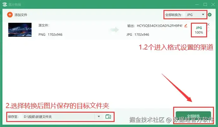 数据 蛙视频转换器不仅支持视频格式转换,还提供了图片格式转换成jpg的功能。这使得用户无需使用多个软件,即可完成视频和图片的格式转换需求,提高了工作效率。软件支持一次性导入多个图片文件进行批量处理,这大大节省了用户的时间和精力。