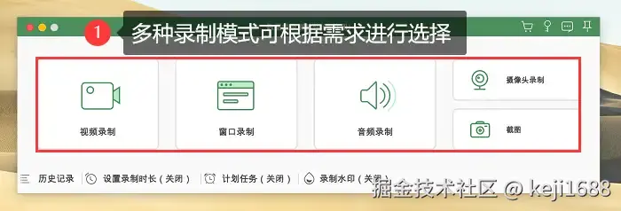 步骤1:安装好录屏软件完成后,点击进入主页面,根据录制需求选择合适的录制模式,电脑录屏常用 【视频录制】 模式。