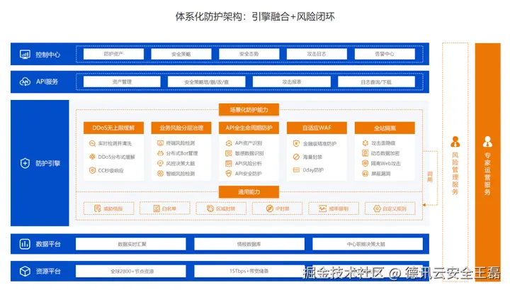在事中阶段,从网络安全、应用安全、业务安全、API安全各层面,为Web应用提供全面安全防护闭环。包括DDoS防护、CC防护、业务安全、API安全、Web攻击防护、全站隔离和协同防护。