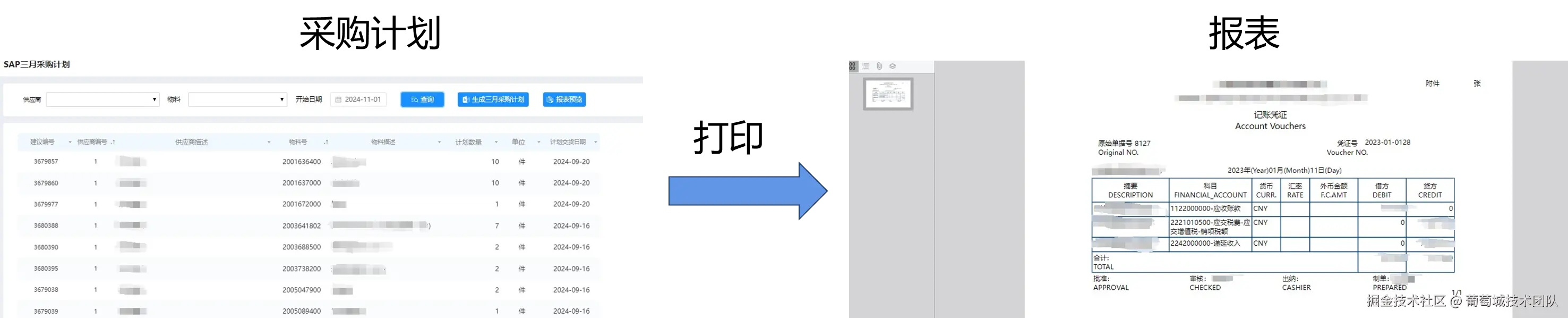 在采购方面,助力公司强化采购、生产、销售、财务各环节业务协同,将采购数据打印为报表,以确保业务单据、发票和凭证能够完整记录并“有迹可循”。