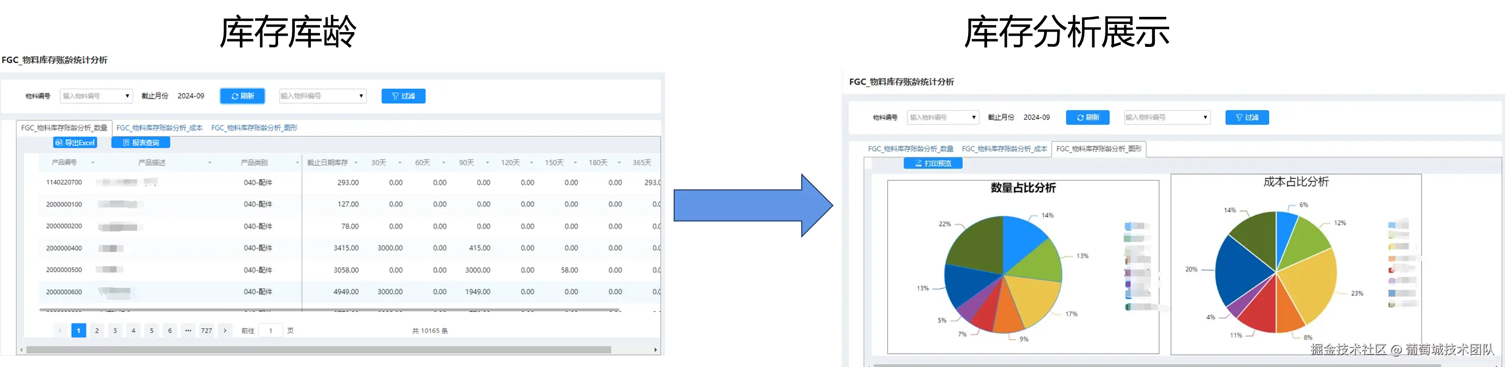 在库存账龄分析模块中,借助物料“库龄”分析,设定合理的“安全库存”和“采购量及采购周期”。工作人员经过数据筛选后,能够对库存进行详细分析,确认库存余量和成本,从而为制定下一步的采购计划提供有力支持。