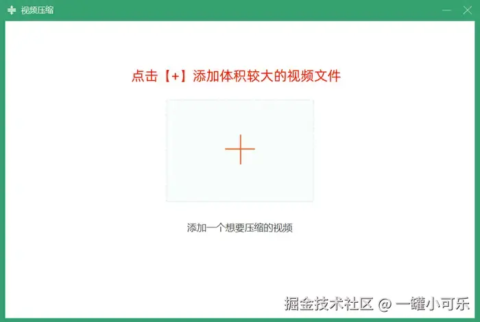 步骤2:单击 【视频压缩】 ,并点击 【+】 添加体积较大的视频文件。