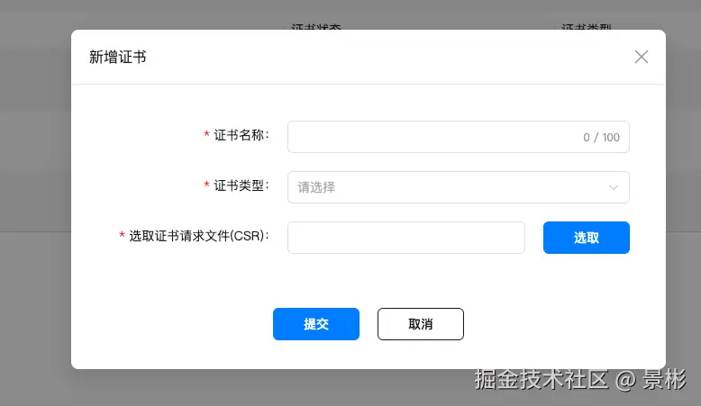 证书生成需要csr文件: