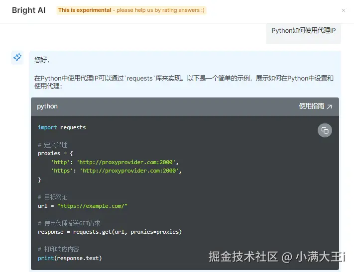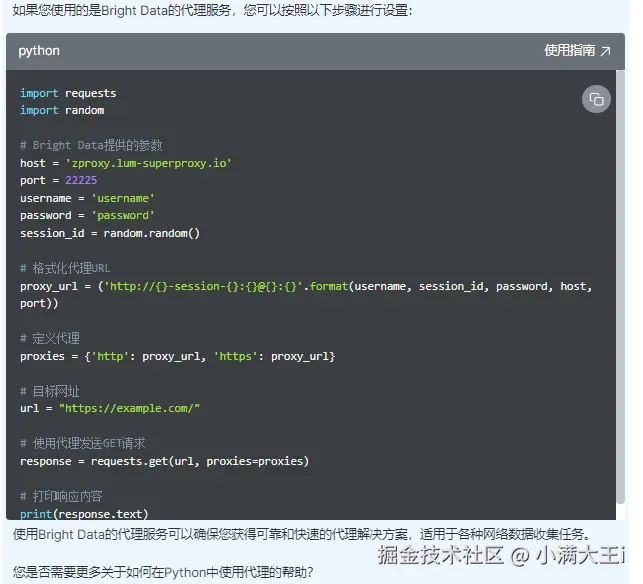 比如:我们提问”Python如何使用代理IP“