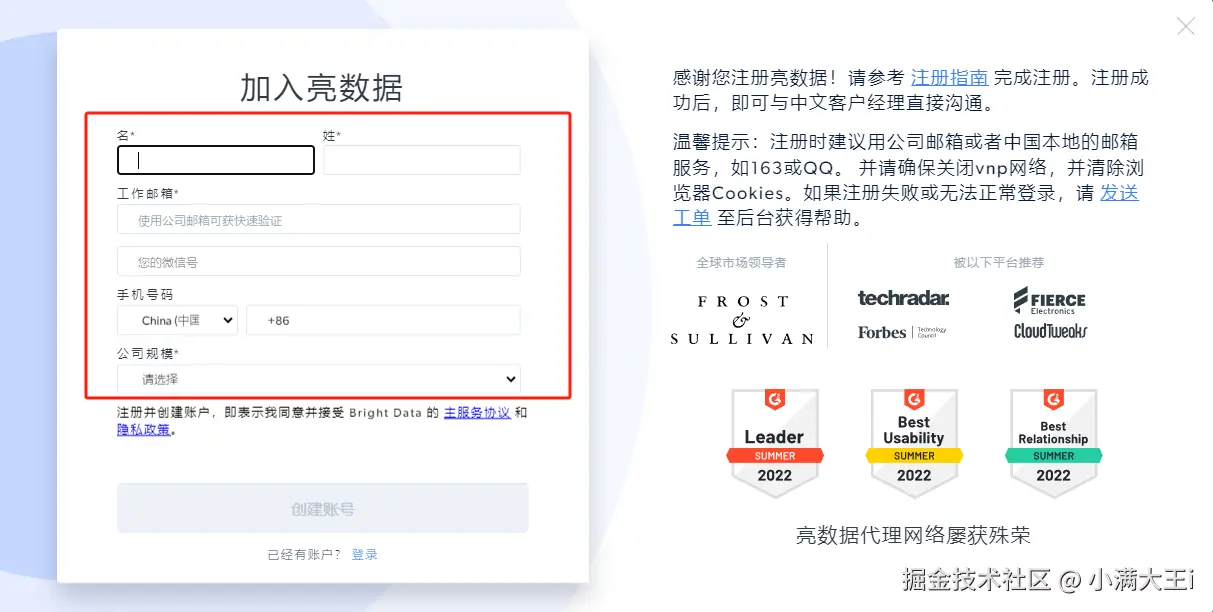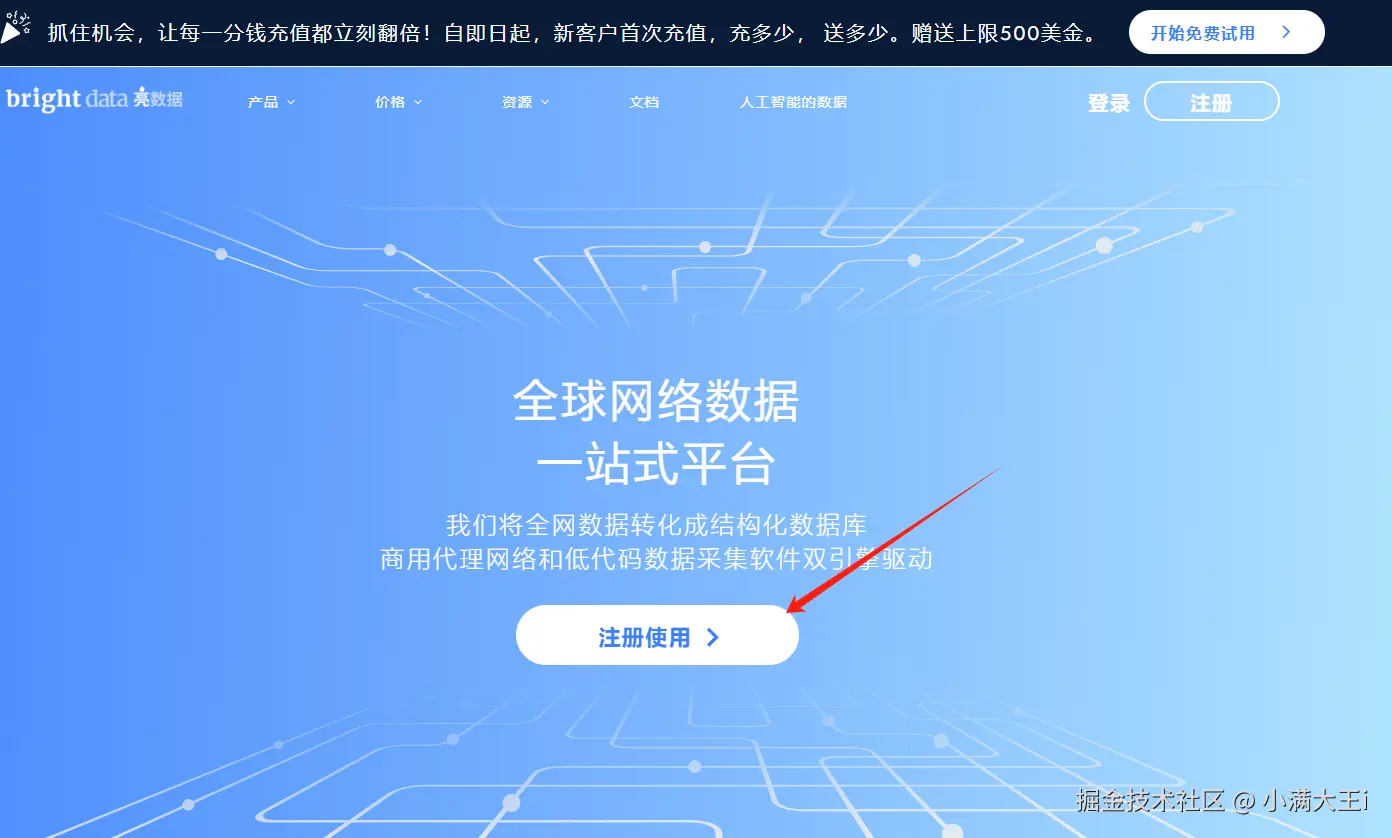 1、首先打开官网,点击注册: 亮数据官网