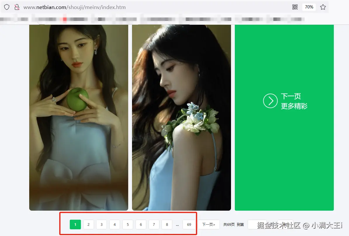 在日常生活或工作中,我们用的最多的就是手机,一个养眼的壁纸能让人心情愉悦(狗头保命),手动一个个下载壁纸显然是非常繁琐且耗时的。因此,本文将介绍如何使用Python爬虫技术批量下载好看的壁纸(网站地址:www.netbian.com/shouji/mein…