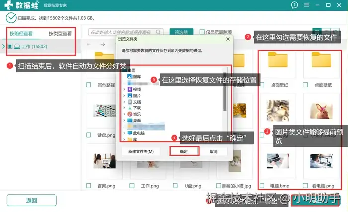 第2步: 耐心等待软件扫描结束后,选择自己需要恢复的文件,勾选后点击“导出”,最后在弹窗中选择恢复文件的存放位置即可。