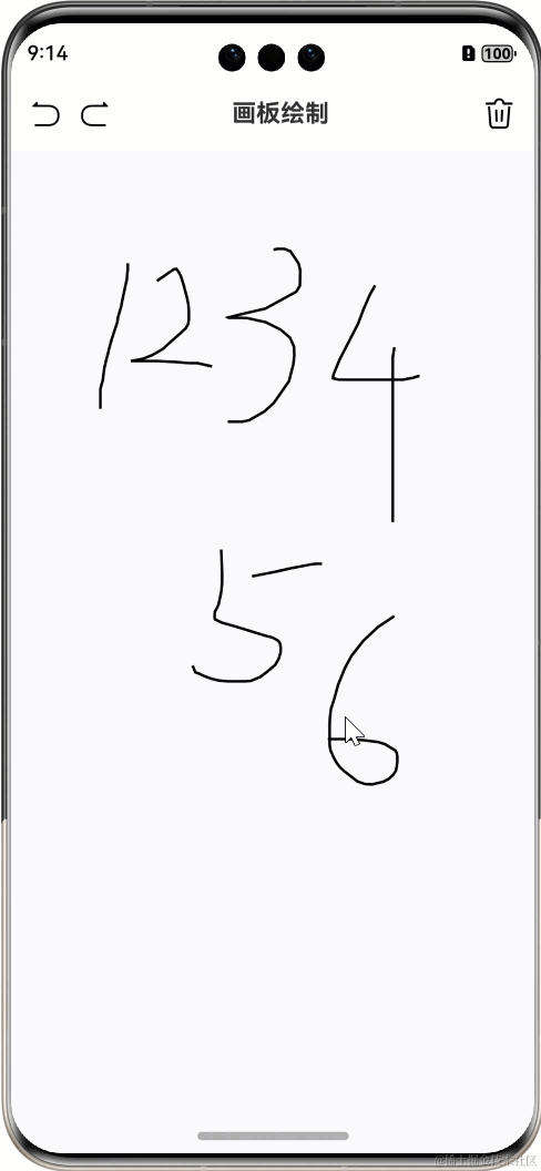 清空绘制逻辑非常简单,就是将线数据置为空列表,再绘制即可。这里注意一下,和 html 的绘制一样,鸿蒙每次绘制并不会主动清空画板,如果希望画板内容由数据控制,最好在绘制前通过 canvas.clearRect 清空一下当前绘制内容: