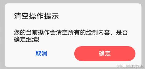 - 右上角按钮可以弹出清除提示框,点击确认时清空画板。