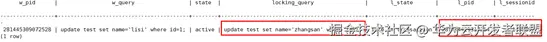 查询结果如图18所示,可以获取当前库中存在锁阻塞的SQL语句,同时获取到阻塞它的会话ID、线程ID以及对应的查询。