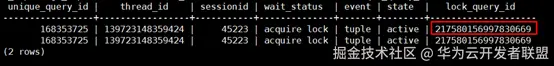 如图21所示,lock_query_id 为阻塞该SQL语句的query_id。