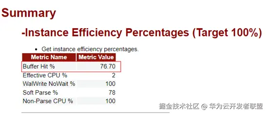 1)共享缓存区不足,导致SQL的buffer命中率低。为了查看相应的性能指标,可以借助GaussDB的管控平台或者WDR报告。通常情况下,TP数据库的buffer命中率应该在99%以上。如果数据库的buffer命中率较低,建议排查数据库的shared_buffers参数设置是否合理(如图11所示)。