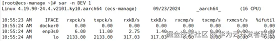 通过 sar -n DEV 1 命令,查看网络的传输情况。