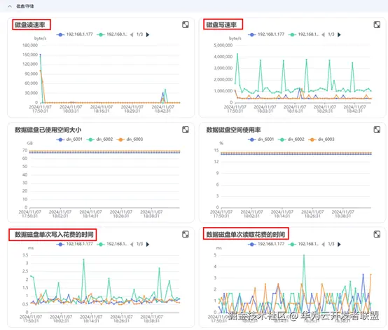 点击磁盘/存储菜单,可以查看磁盘I/O使用率,重点关注磁盘读写速率以及时延是否符合预期,如图3所示: