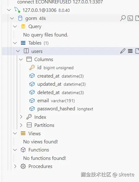 能够查看到服务启动时输出123,DB初始化成功,可以使用vscode中的MySQL可视化工具看到相关的数据库情况