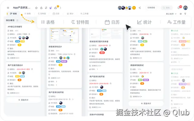 板栗看板支持任务看板、列表、日历、甘特图等多种视图模式,满足不同部门的管理需求。市场部可能更偏好以看板方式管理活动进度,而产品团队则可能更适应甘特图这种时间轴模式。通过切换视图,各部门既能满足自身习惯,又能在统一平台中协作。