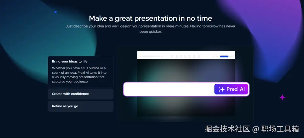 Prezi AI 作为一款在 PPT 制作领域独具魅力的 AI 软件,为用户提供了一种全新的 PPT 制作和演示体验。