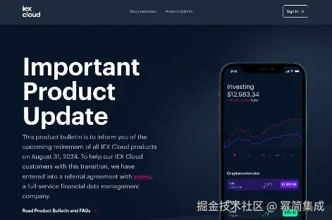 IEX Cloud 提供来自美国股市(包括股票、ETF 和加密货币等)的实时和历史数据。它支持 RESTful API 接口,并提供详细的财务数据、交易所数据等,是开发者常用的数据源之一。