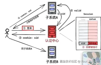 - 被访问的子系统在拿到这个sessionid的时候,需要再次拿这个id去认证中心确认用户的登录状态,若登录成功,此子系统才可以正常访问。