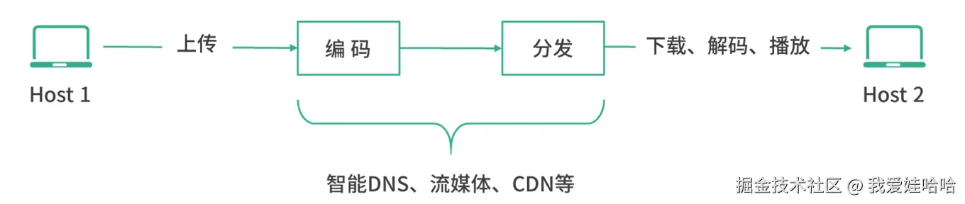 从这个角度出发思考,直播技术仍可复用上述架构。录制端不断上传视频内容,视频内容经编码后由流媒体服务器负责分发。若观看人数较多,可使用 CDN 回源至流媒体服务器。对于直播,m3u8 文件可看作一个动态文件,能够不断产生新的数据。因此,在直播技术中,可以考虑将获取 m3u8 文件设计成一个接口,由播放器不断请求新的 m3u8 文件。