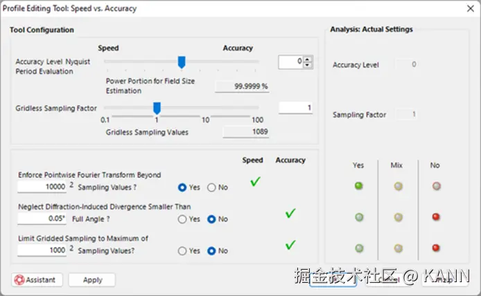 | 随着快速物理光学建模和设计软件VirtualLab Fusion2023.1版本的发布,我们承诺“更透明,更易控制,更易使用”。为了实现这一承诺,我们已经彻底改变了建模设置的控制方式。在本周的新闻简报中,我们将重点放在两个不同的控制面板上,用户可以通过它们在模拟中精确地平衡速度和精度。速度vs.精度面板包含了不同的与采样相关工具的选择,例如奈奎斯特采样,包括使用易于控制的滑块来指定更偏向速度或更偏向精度。 傍轴假设面板允许用户对系统应用近似值,从而加快傍轴系统的模拟时间。 速度与精度工具 |