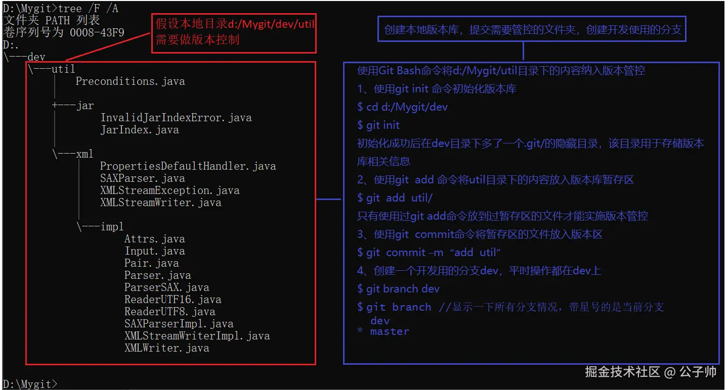 初始化本地仓库:在想要进行版本管理的目录中,使用git init命令可以把这个目录变成 Git 可以管理的仓库。Git 会在工作区新建一个.git/目录,其中包含了本地仓库的配置信息、描述文件以及当前分支等信息。需要注意的是,千万不要手动更改.git/里的文件,以免破坏本地仓库的结构。